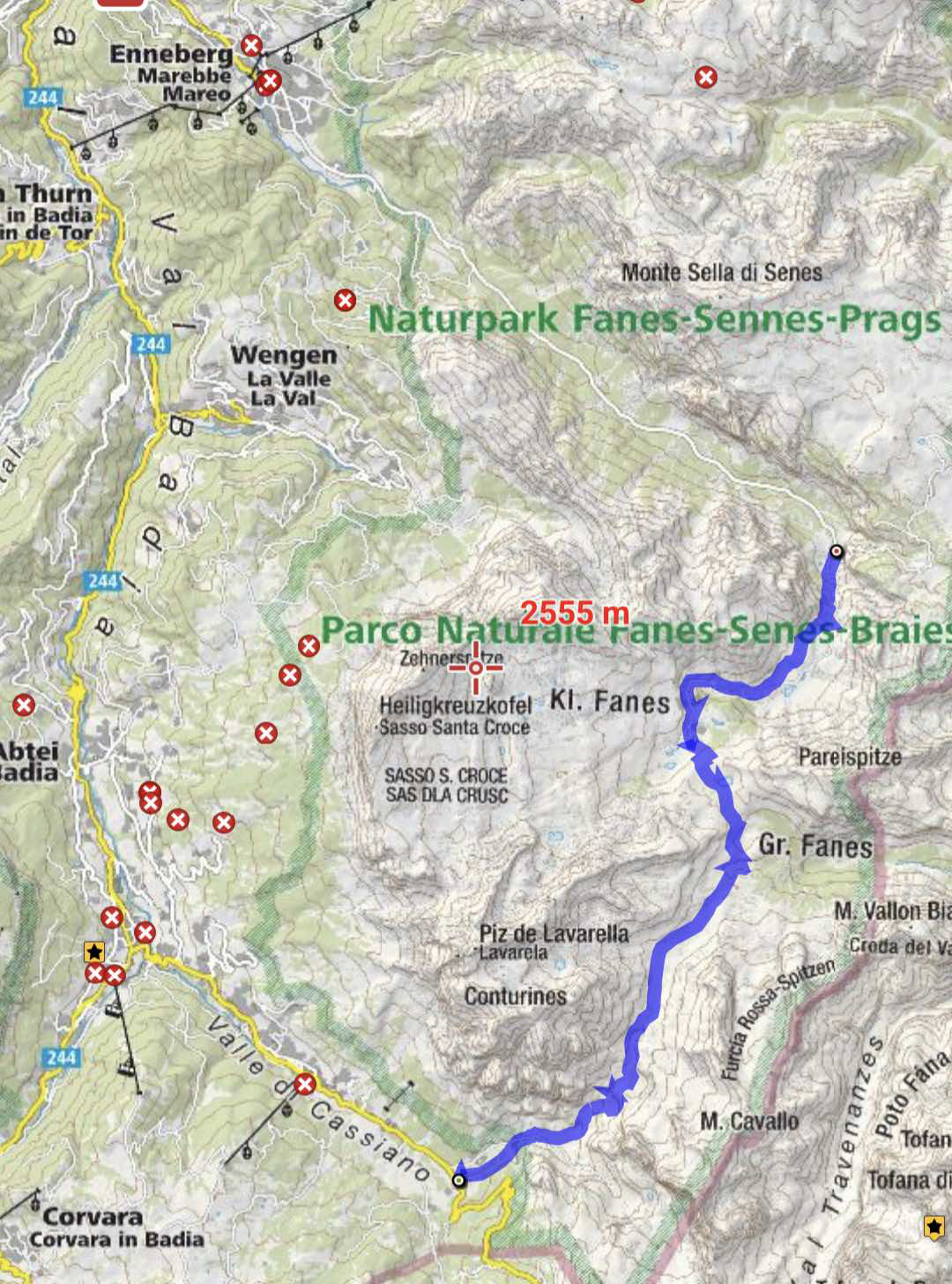 Passeggiata di media difficolta’ di 6 ore circa soste comprese, 700 m di dislivello dal parcheggio di Sciare’. Salita iniziale dalla capanna Alpina impegnativa, poi una piacevole passeggiata sulla spettacolare val di Fanes. Discesa nel pomeriggio verso rifugio Pederu’. Rientro in autobus.